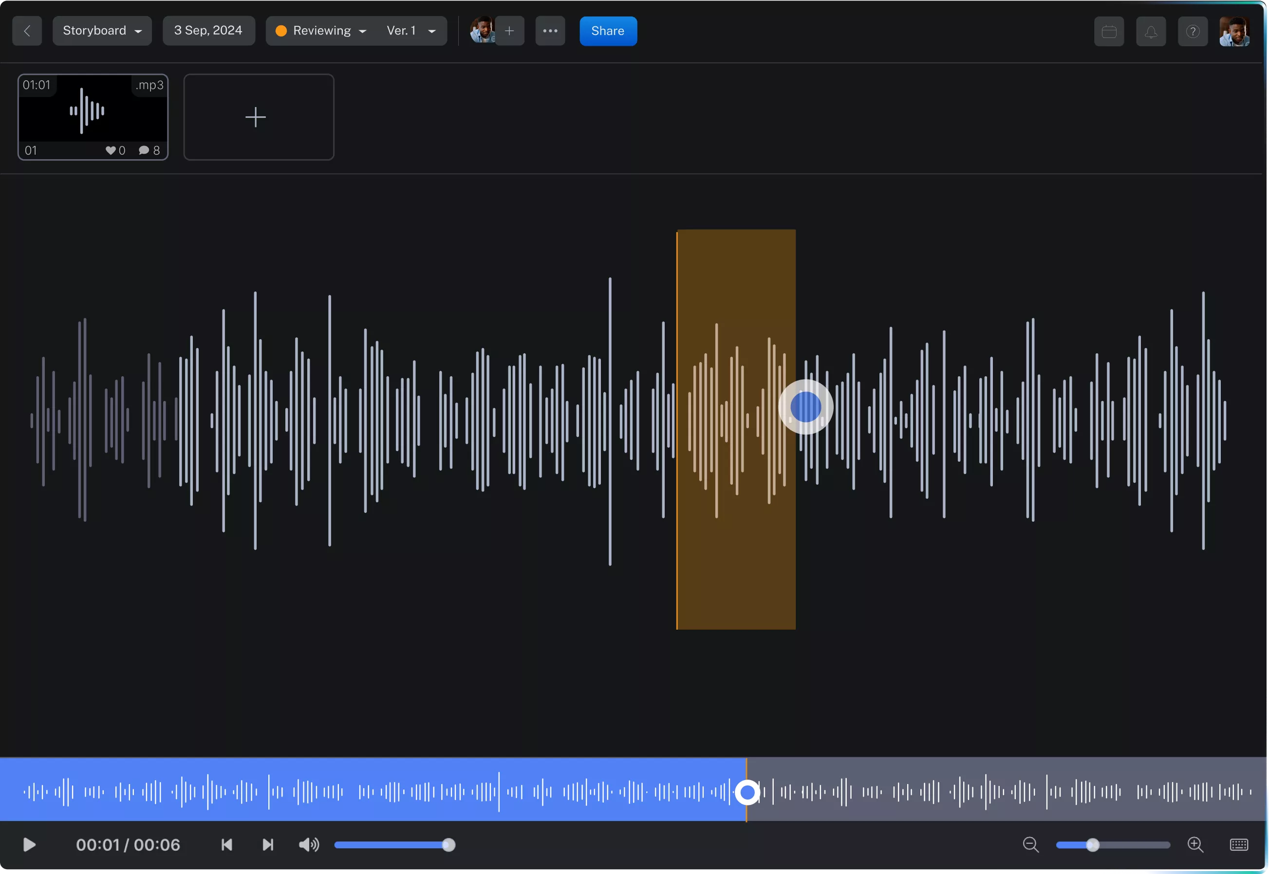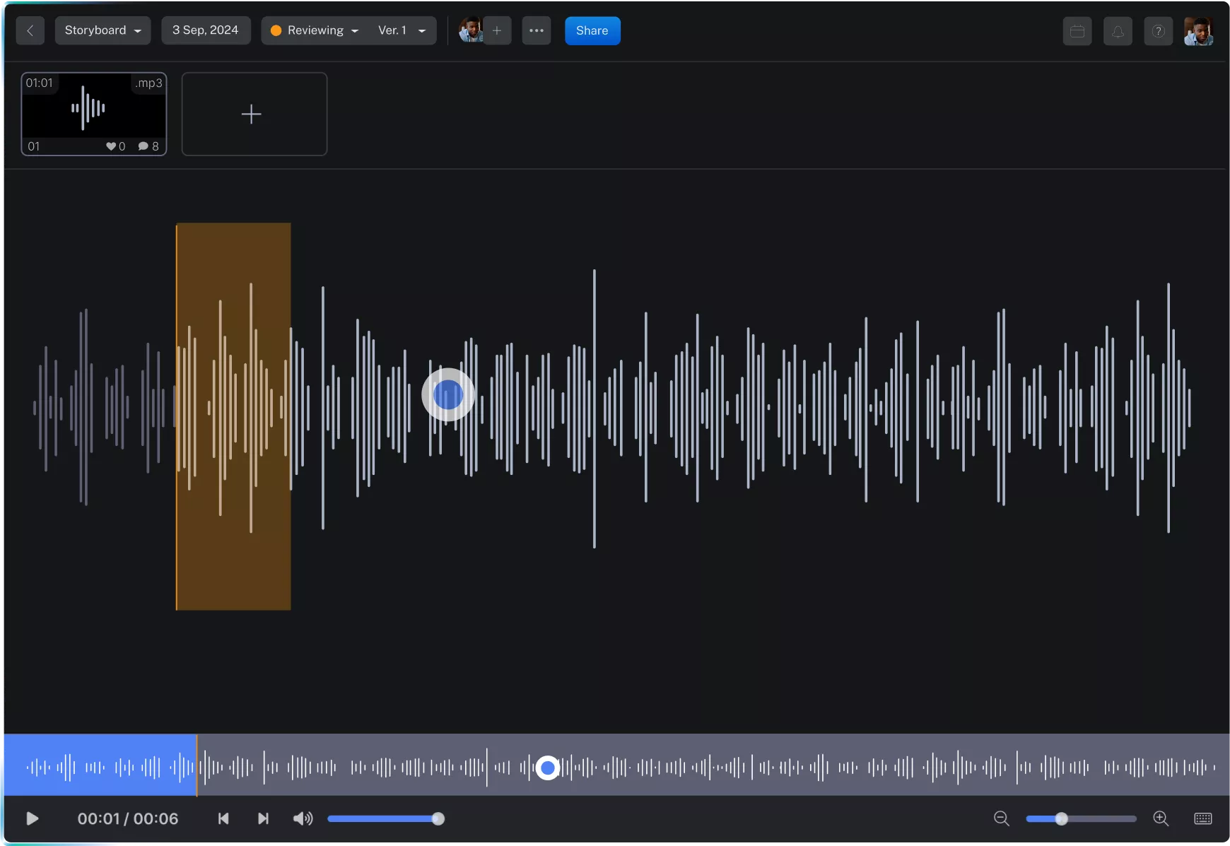 Our advanced audio comment system enables users to instantly share real-time feedback on specific audio file clips, promoting seamless collaboration and communication.