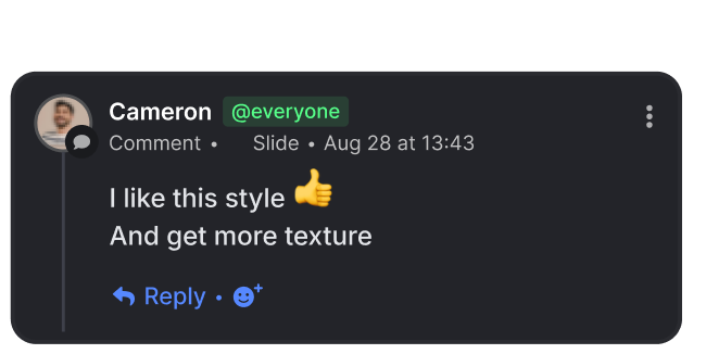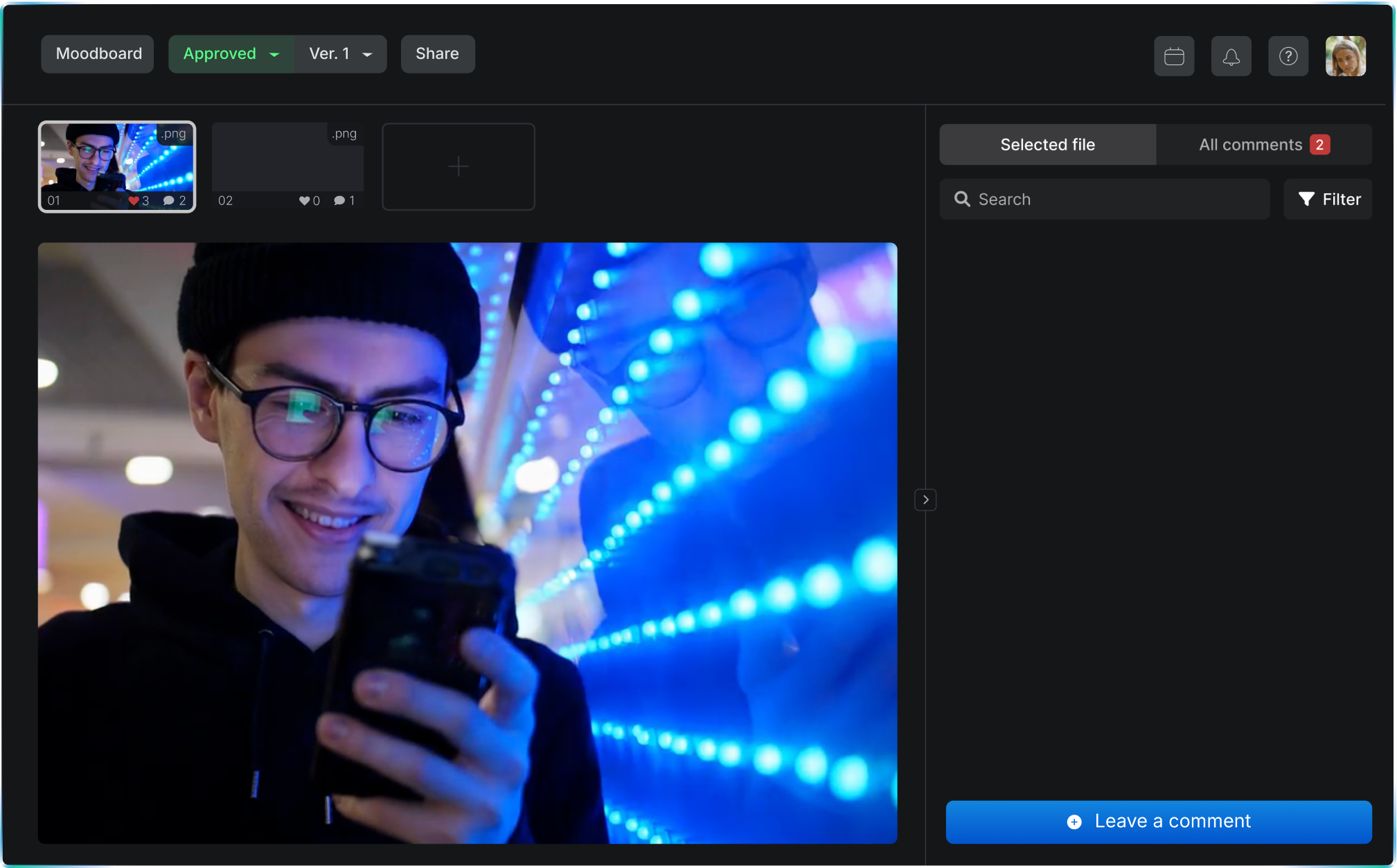Leave visual comments on any file – images, PDFs, or videos – by simply clicking on the desired place and sharing your thoughts in the comment.