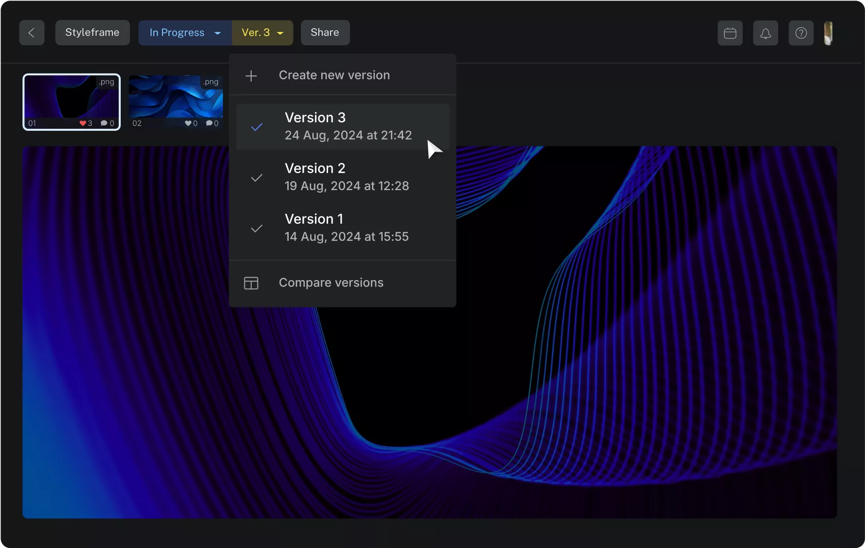Create a limitless number of versions for each project step. Share them with your client and team.