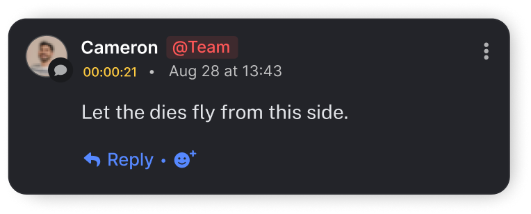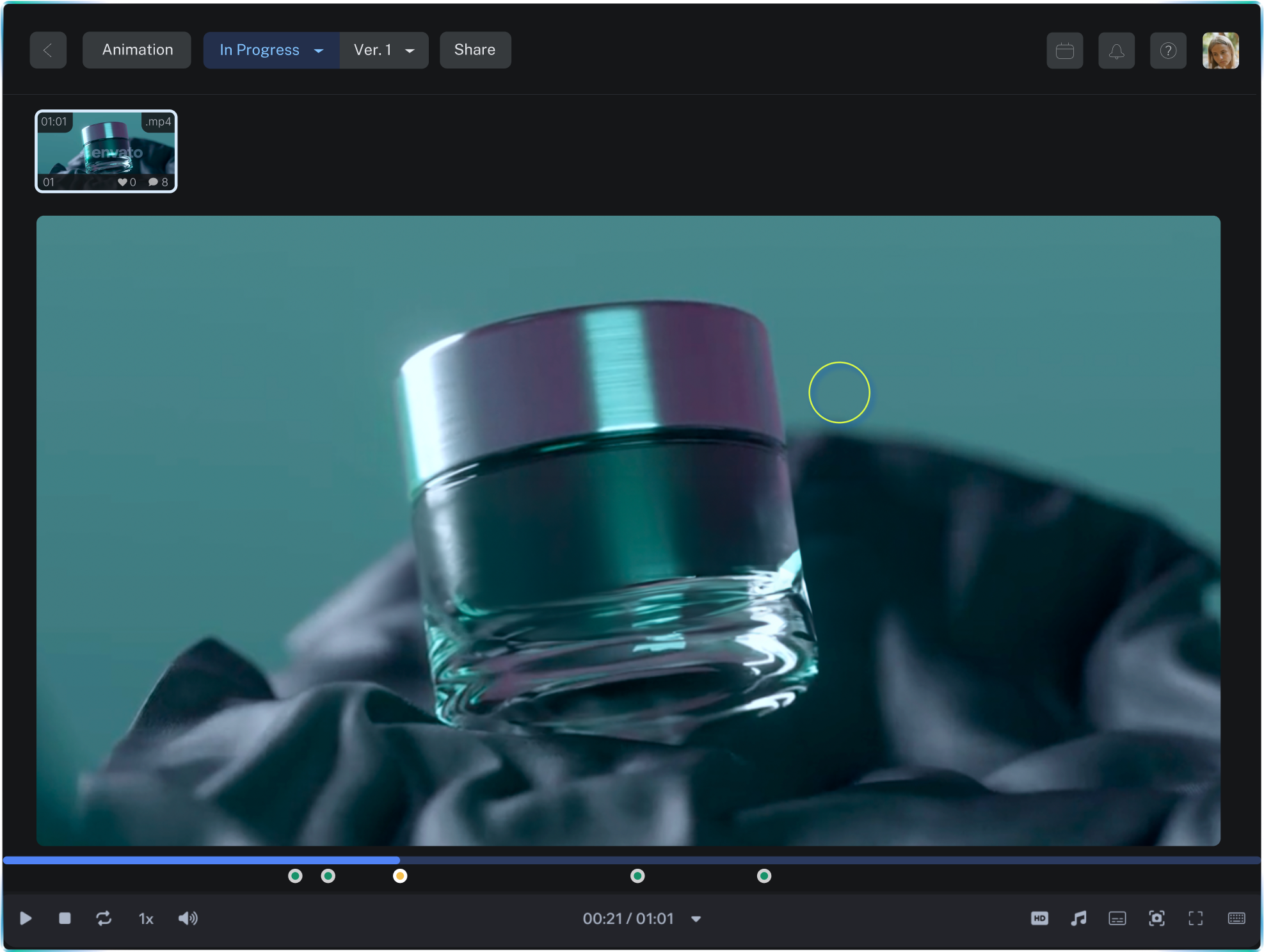 Tap anywhere on the frame to leave feedback; this comment will be marked with an automatic timestamp. You can also hide or show your timestamps.